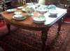 the oval top with moulded edge, on carved baluster legs and ceramic castors, three extra leaves