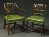 to include two carvers, the turned and block toprail above reeded splats and between carved reeded supports, above stuffover seat with square cut tapering legs joined by an H-stretcher (3)