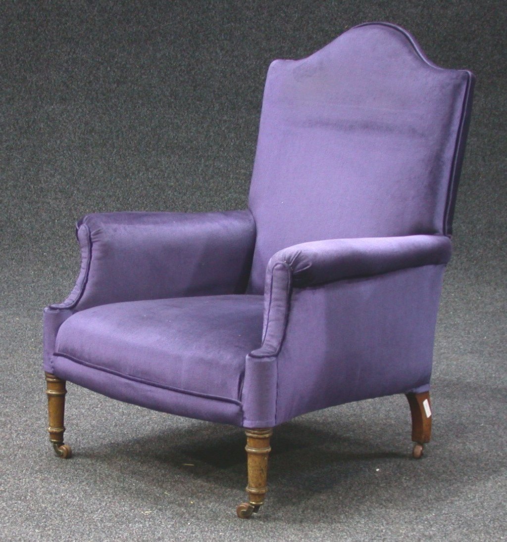with shaped upholstered back, on turned legs