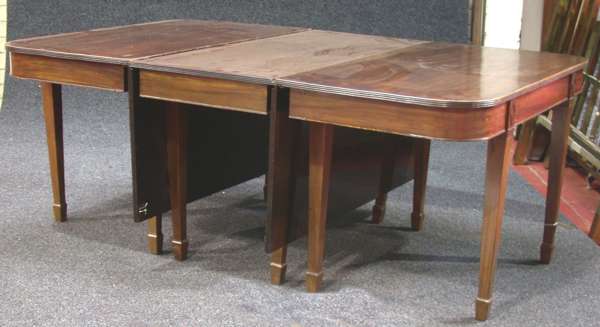 comprising a central drop leaf section and two D-ends, with reeded edge, on square tapering legs,