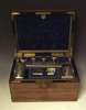 the hinged lid, with central brass inlay marked "Marion", opening to reveal fitted interior, with secret drawer to front and brass carry handles