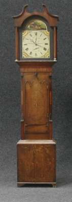 A George III, 30 hour oak longcase clock, the single train movement with painted dial enclosed with inlaid oak case,