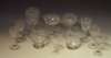each etched with scrolling vine leaf and grapes, comprising; nine large goblets; nine champagne bowls; eighteen large wine glasses; twelve smaller wine glasses; sixteen smaller again; six wine glasses with narrow bowls; twenty one smaller, of similar form; eight liqueur glasses; twelve round bowl tumblers; eight straight sided tumblers; twelve bowls; a pair of decanters; another smaller; and a large centre bowl on airtwist stem [qty]