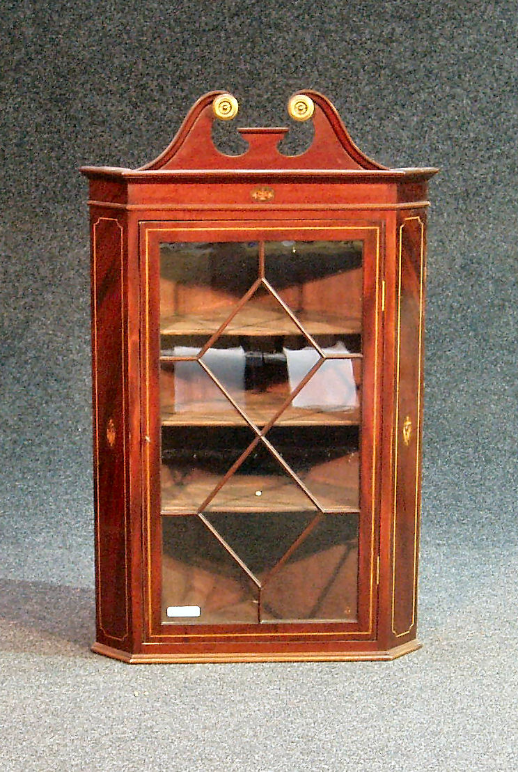 with swan-neck pediment above a single astragal glazed door enclosing shelves