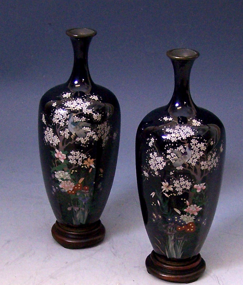 A pair of small Japanese cloisonne vases,