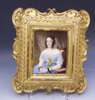 seated, half length, wearing a blue dress, watercolour on ivory, signed Chester Earles 1850, in a decorative gilt frame