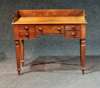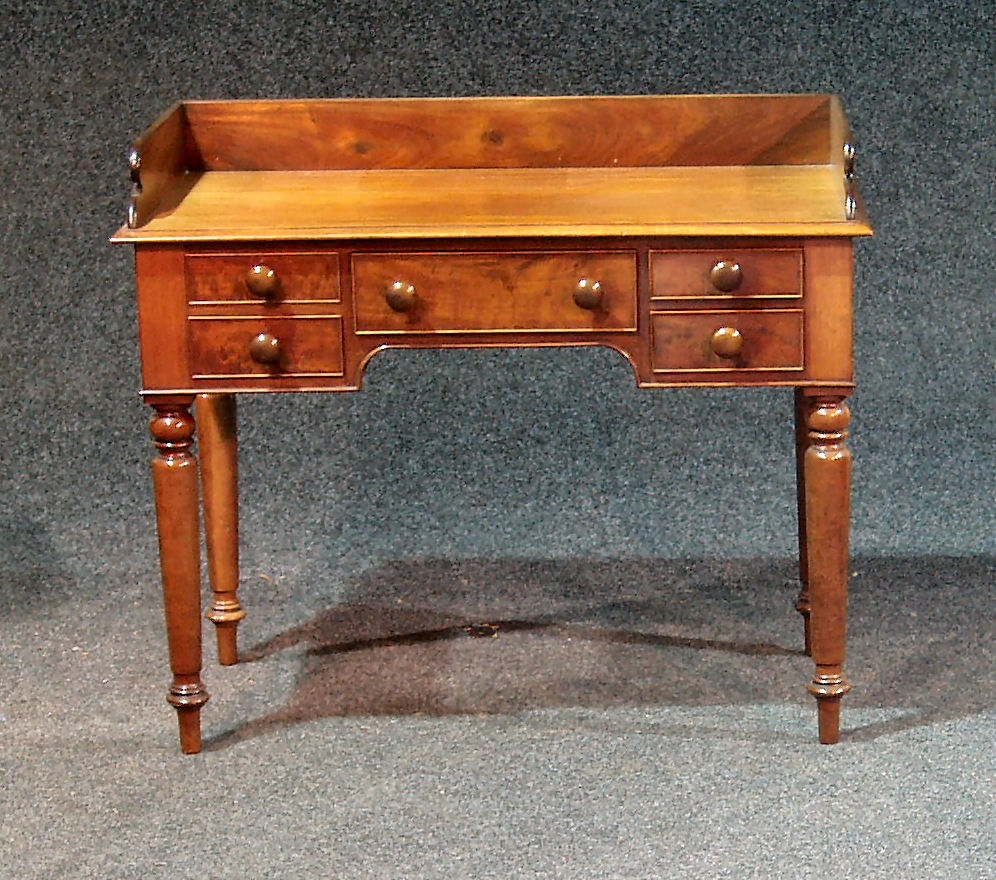 with three-quarter gallery on moulded rectangular top, above a single long drawer flanked on either side by two short drawers, on turned legs