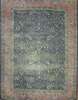 the indigo field with allover foliate and boteh pattern, within rose palmette and foliate vine border between double bands