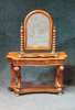 the arched plate between spirally turned supports, with serpentine base on bun feet 81cm wide; and a Victorian mahogany dressing table, with moulded serpentine top over plain frieze with a single short drawer, on double scrolled legs united by a single shelf, on bun feet,129cm wide (2)