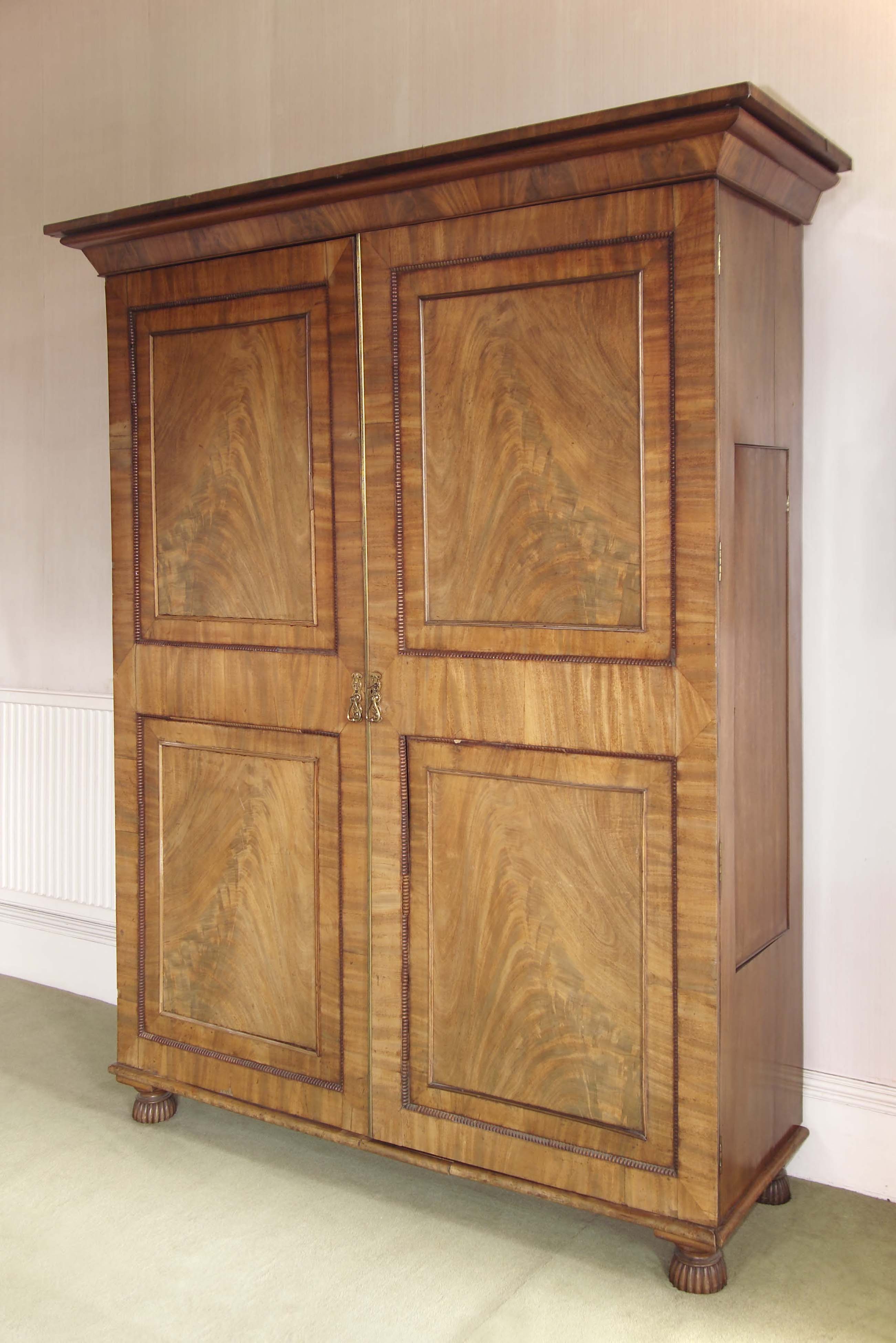 the projecting cornice above two large panelled doors, gadrooned border, reeded disc feet