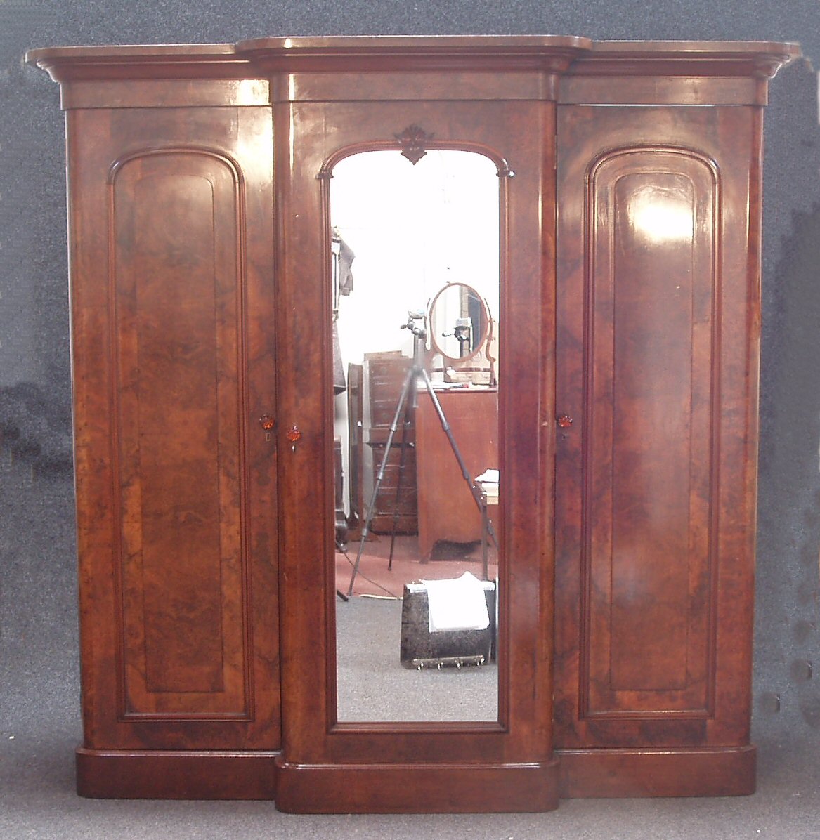 A Victorian walnut breakfront wardrobe,