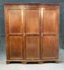 with moulded dentil cornice above a boxwood strung frieze, over three full length panelled doors on bracket feet