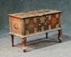 decorated with brass birds feeding on fish, on cabriole legs with spade feet