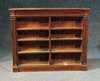 with moulded top over moulded frieze panel above two banks of three adjustable shelves, flanked by columns, on plinth base