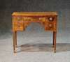 with a central frieze drawer and central recess, flanked on either side by one shallow and one deep drawer, on square tapering legs and pad feet