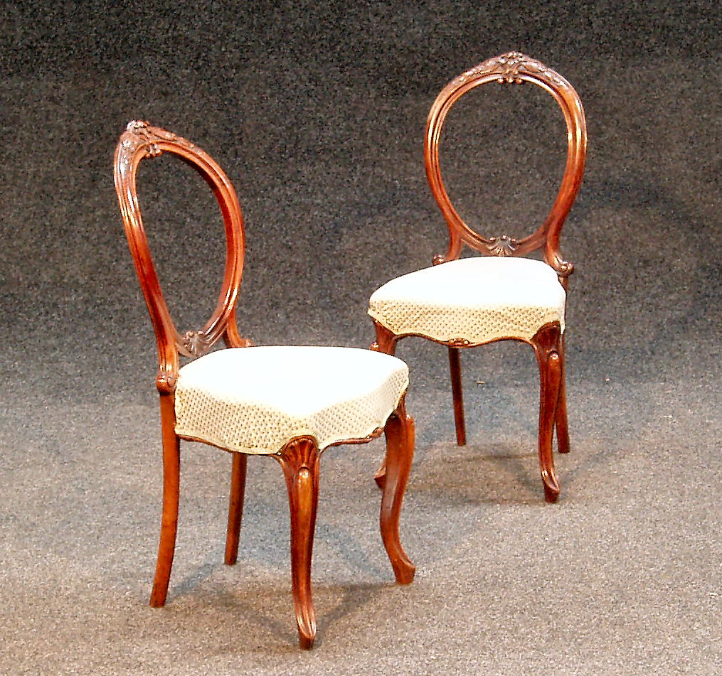 each with foliate carved balloon back above a serpentine upholstered seat on cabriole legs (4)
