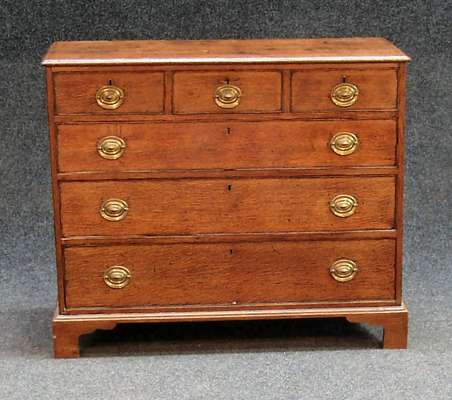 with moulded rectangular top above three short over three graduated long drawers, on bracket feet