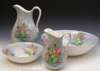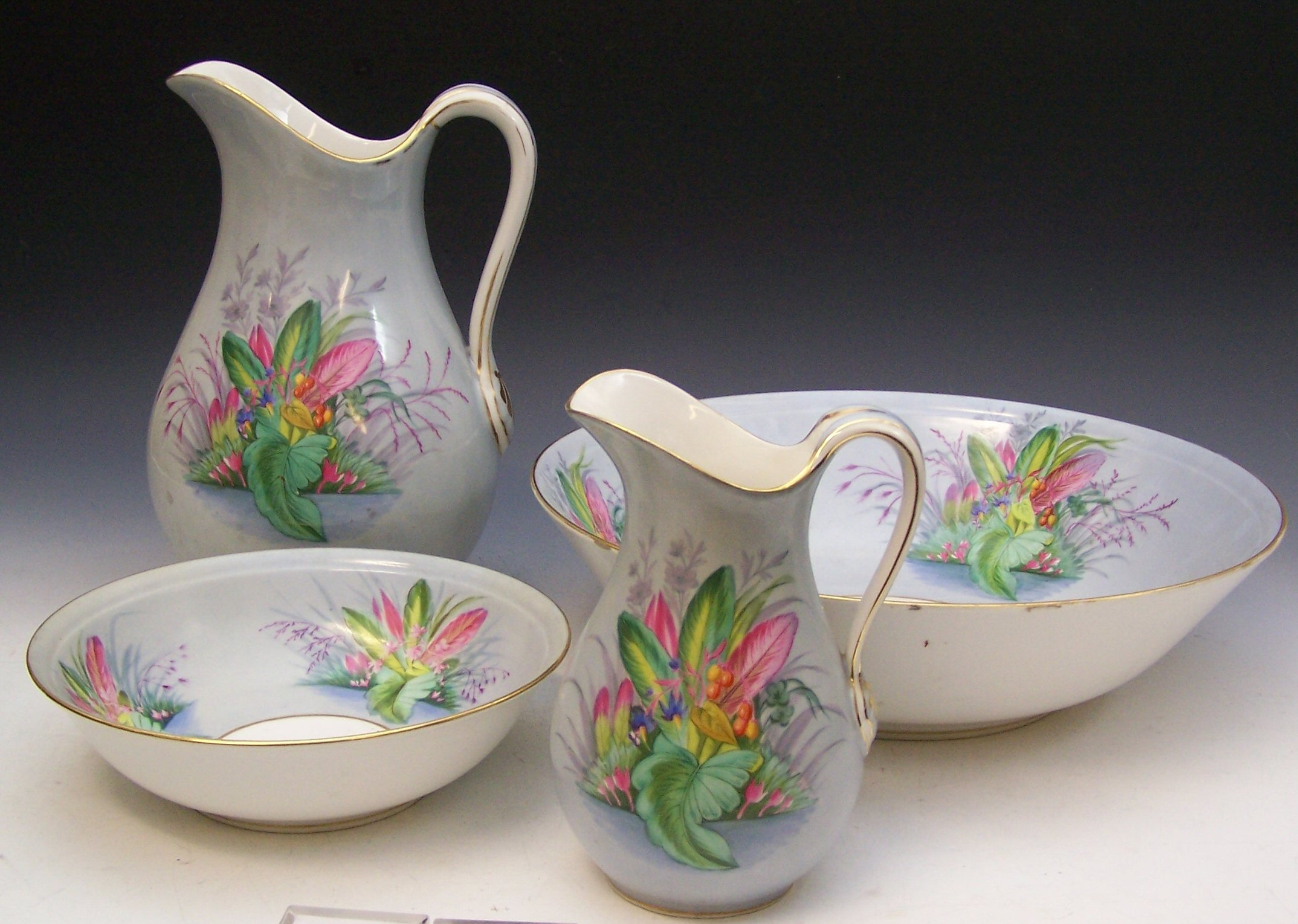 decorated with a blue grey ground and floral sprays; together with a smaller ewer and basin to match (6)