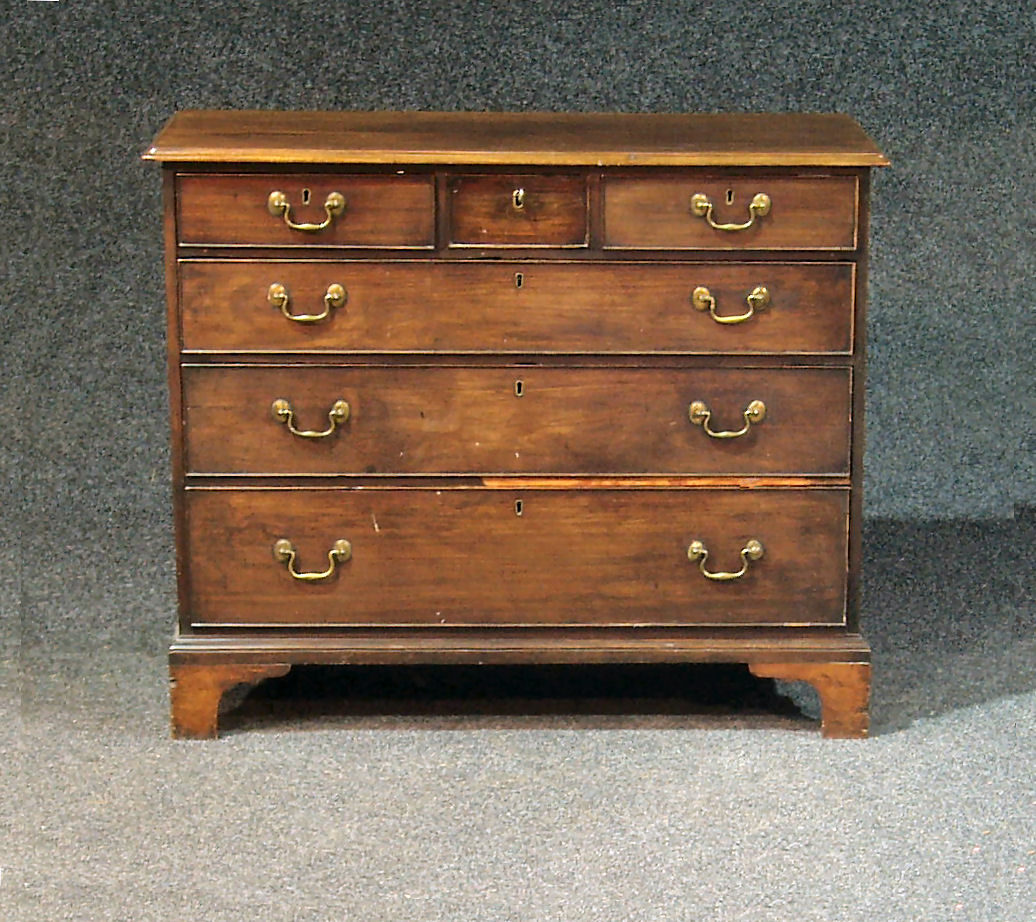 with moulded rectangular top above three short over three graduated long drawers, on bracket feet