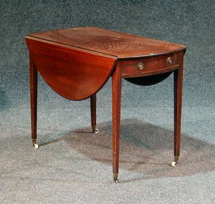 with demi-lune top above a single frieze drawer, on square tapering legs with brass caps and ceramic castors