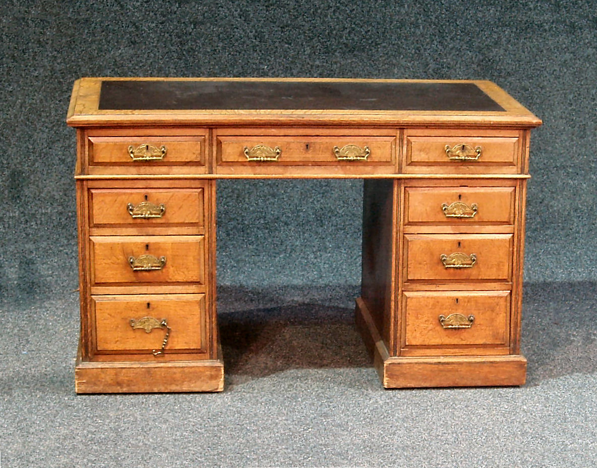 A Victorian oak twin pedestal desk, by Maple & Co,