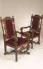 of Charles II style, each with arched acanthus-carved top rail above arched padded back framed by similar acanthus scrolls, the upholstered seat flanked by slightly outscrolled armrests, on moulded cabriole legs and scrolled toes joined by a foliate carved front stretcher and X-stretcher centred by a boss (2)