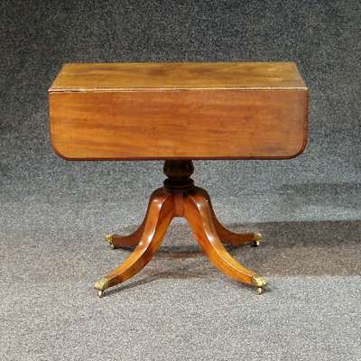 with moulded top above a single frieze drawer, on single baluster column with four sabre legs, with brass claw caps and castors