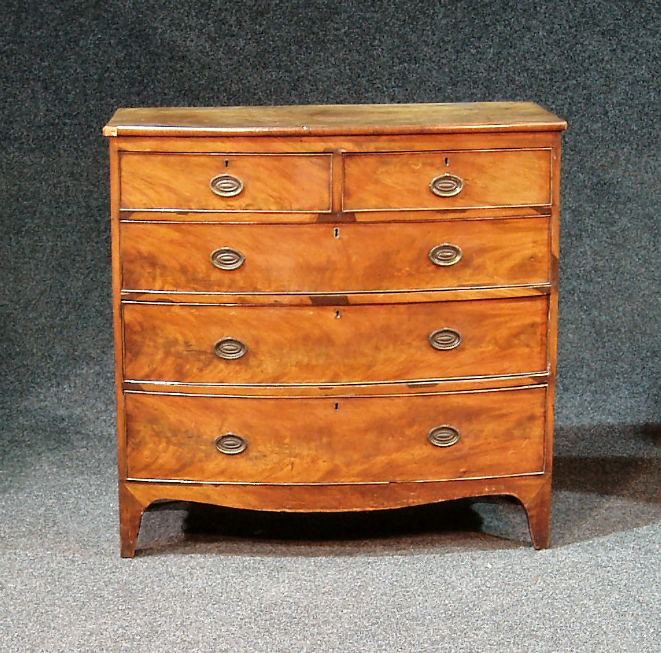 with two short over three long graduated drawers, shaped apron, on bracket feet