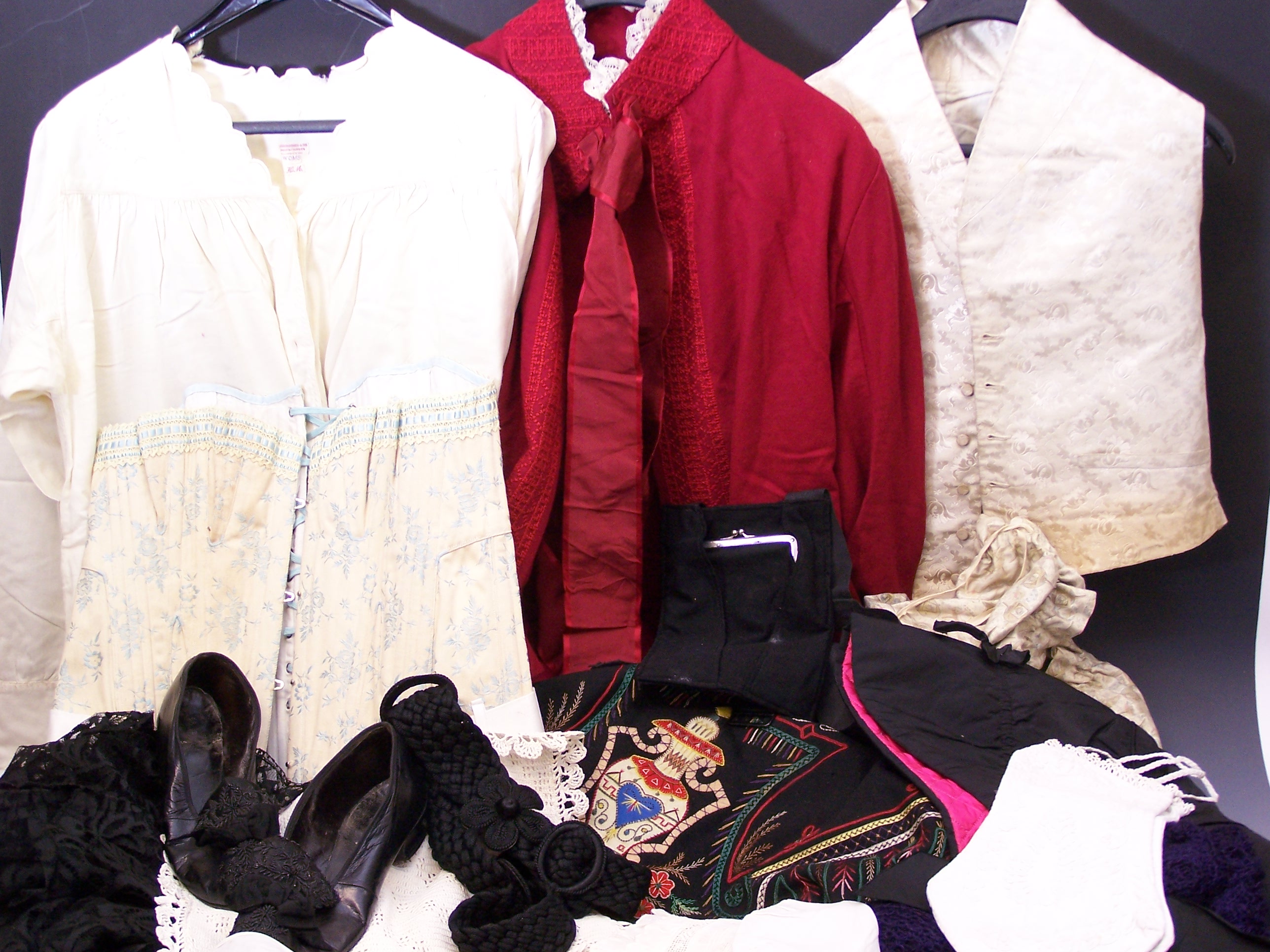 including: a quantity of Victorian cotton nightwear; and a quantity of knitted shawls; blouses; corsets; purses and bags, etc (qty)