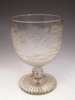 wheel engraved with a hunting scene, above diamond cut band, knopped stem and star cut foot