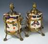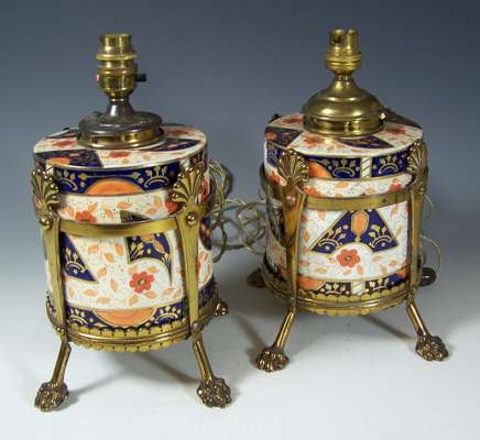 decorated in blue and gilt with stylised flowers, fitted for electricity (2)