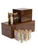 comprising: a small walnut box containing eleven bottles and nine stoppers, stamped 'J.C Pottage, Homeopathic Chemist, 117 Prince's Street, Edinburgh', 12.5cm wide; and another larger homeopathy set, with fitted wooden interior, comprising: thirty five bottles and stoppers, stamped 'W Butcher, Homoeopathic Chemist & Publisher, Blackheath London', 25.5cm wide (2)