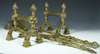 with turned handles, comprising: a poker, a pair of coal pincers and an ash shovel, each approx. 79cm long; also a pair of Aesthetic Movement brass fire dogs, 21cm long (5)