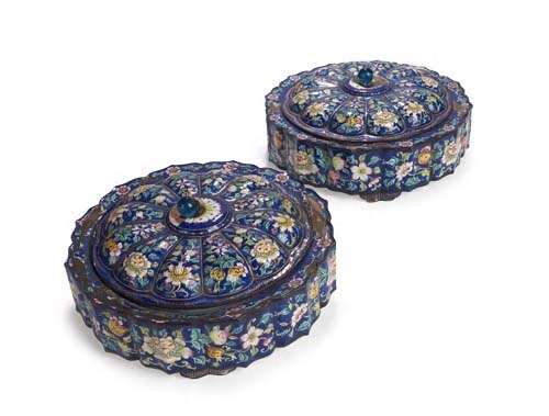 A pair of 19th century enamel boxes and covers,