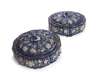 each of circular lobed outline, painted with panels of flowering branches on a Royal blue ground, damages (2)