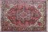 the red field with large central indigo medallion, ivory and red spandrels, within indigo turtle palmette, rosette and vine border between bands