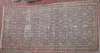 the indigo field with allover herati pattern, minor red spandrels, within red rosette and serrated leaf border between olive and lemon bands