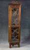 the swan neck pediment above a moulded cornice and boxwood strung frieze panel, over an astragal glazed door enclosing three shelves, on stepped conforming base with bracket feet