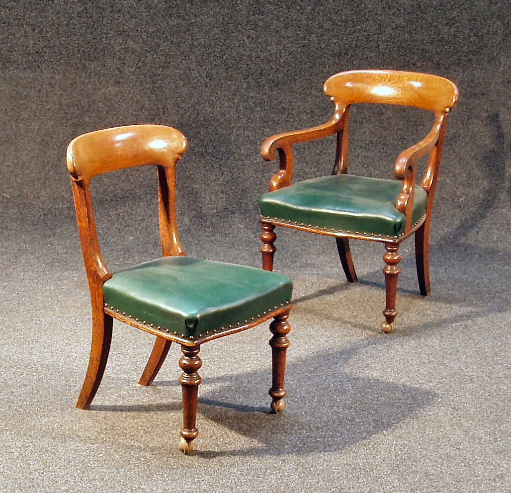 A set of ten Victorian oak dining chairs, †