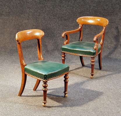 including two carvers, each with crest top rail over leatherette seat, on baluster turned legs (10)