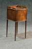 with a three quarter gallery on a moulded bowfront top, above a single cupboard door, on square tapering legs