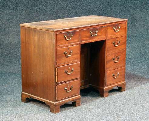 with a single short frieze drawer over a kneehole cupboard flanked on either side by four graduated short drawers, on bracket feet