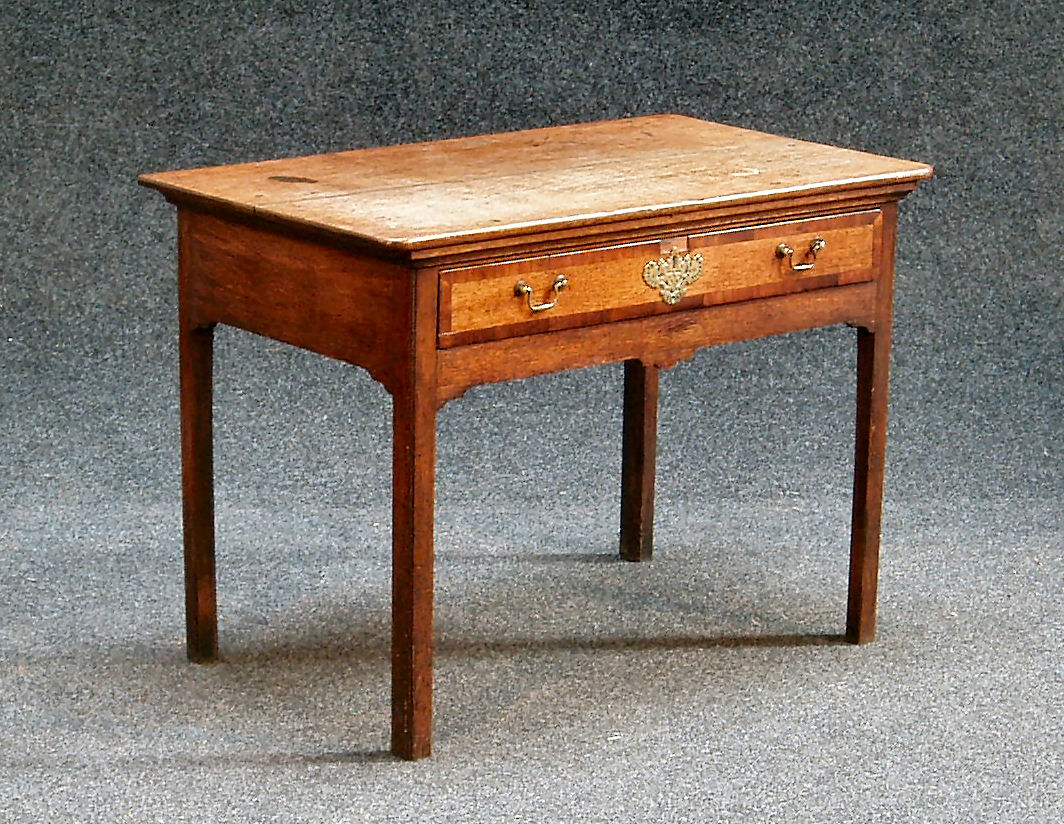 the stepped rectangular top over a banded frieze drawer, on square legs