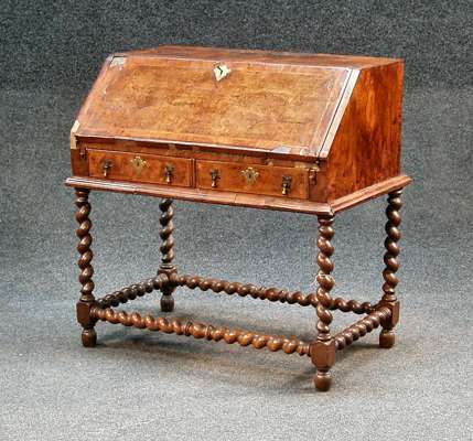 An early 18th century walnut bureau,