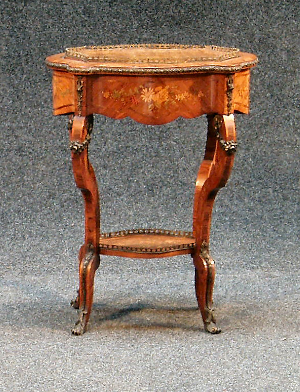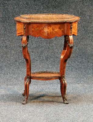 A Louis XV style kingwood and marquetry inlaid oval jardiniere stand,