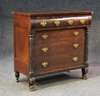 the rectangular top over two convex frieze drawers and three graduated long drawers flanked by acanthus carved pilasters, on paw feet
