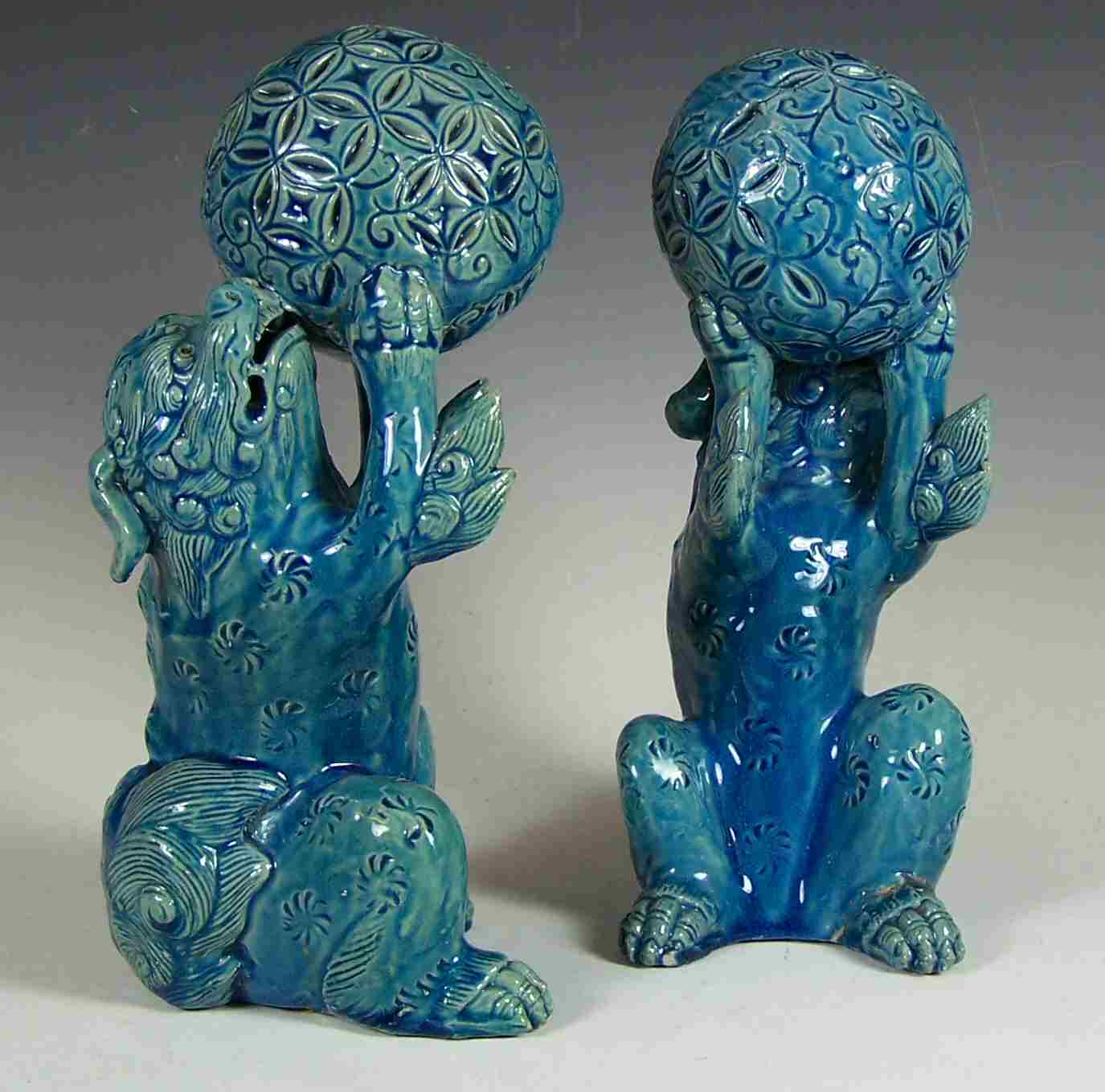 A pair of Chinese turquoise glazed Dogs of Fo,