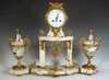 in the 18th century manner, the clock with a painted enamel dial; and a pair of twin handled urns (3)