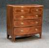 the satinwood banded top with reeded frieze, two short over three boxwood strung graduated long drawers, serpentine apron, on splayed bracket feet