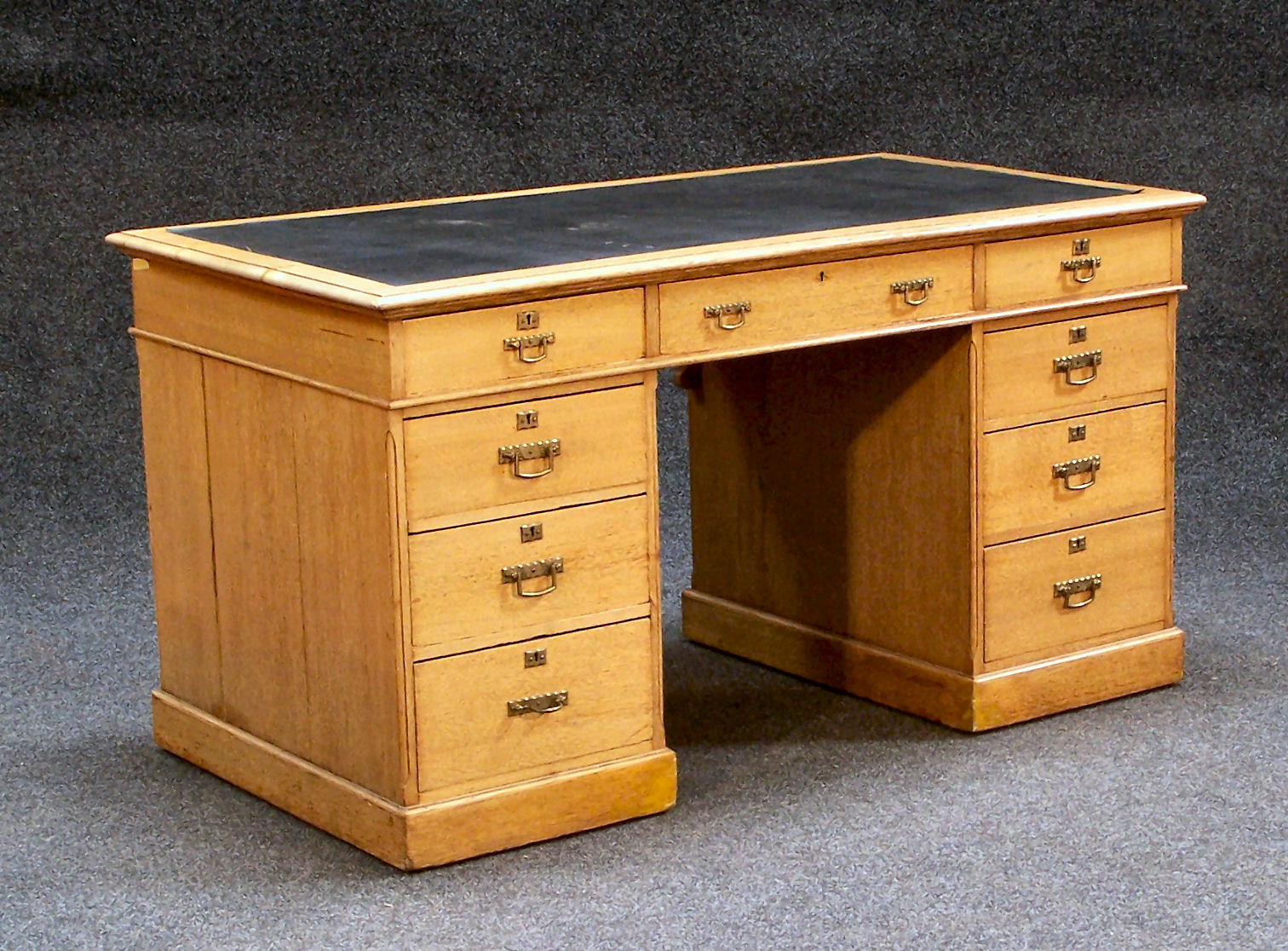 the moulded rectangular top with inset skiver over a single long frieze drawer, flanked by four graduated short drawers, matching dummy drawers to the rear, on plinth base